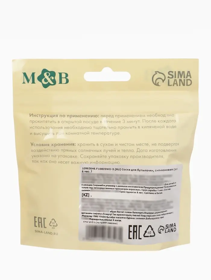 Соска для бутылочки, +6мес., M&B, ШГ Ø70 мм