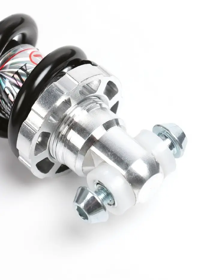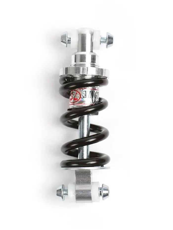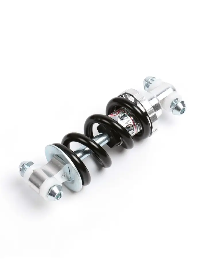 Задний пружинный амортизатор предназначен для смягчения ударов и вибраций при передвижении по пересечённой местности на велосипеде. Длина — 125 мм, сила сжатия — 750 фунтов.