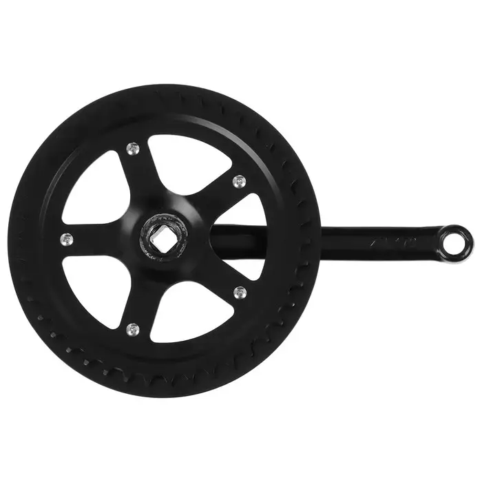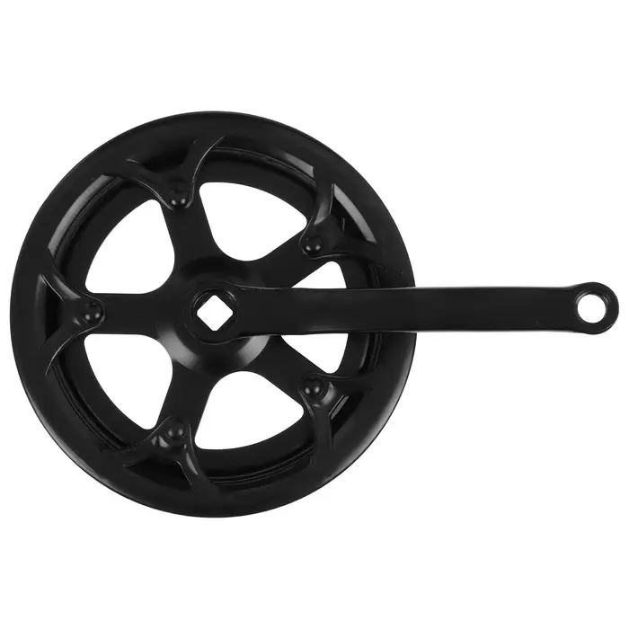 Система шатунов подойдёт для скоростных велосипедов для педали под резьбу 9/16. Система имеет 1 звезду с пластиковой защитой и заглушки, подойдёт под квадратный вал. Материал изделия – сталь.