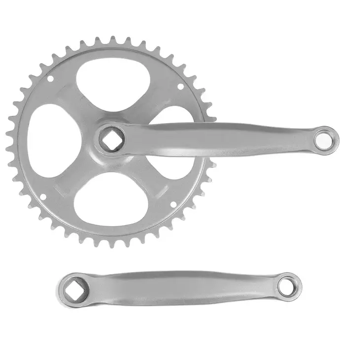 Система шатунов подойдёт для скоростных велосипедов для педали под резьбу 9/16. Система имеет 1 звезду и заглушки, подойдёт под квадратный вал. Материал изделия – сталь.