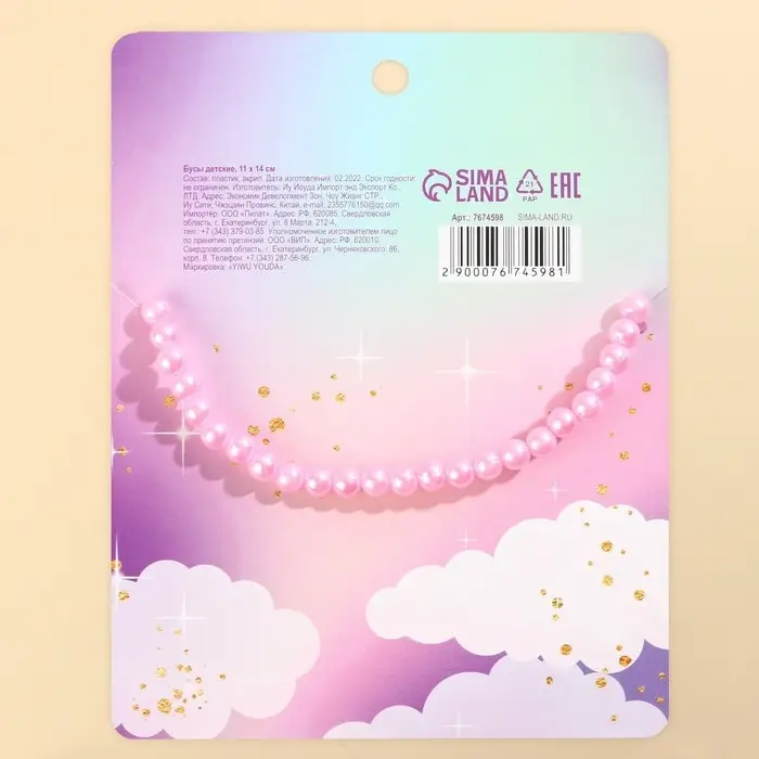 Детские бусы всегда порадуют маленькую принцессу. Шейное украшение отлично подойдет как к карнавальному костюму, так и к нарядному платью. Основой ожерелья является плотная резинка, поэтому такие бусы не порвутся. Также детский аксессуар можно преподнести в качестве подарка ребенку, сестре, племяннице, внучке или дочери, ведь упакован он в подарочную упаковку.
