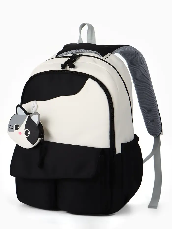 Рюкзак 32*14*46 см, 2 отд, 4 н/карм, +Кошелек, Кот, черный/белый