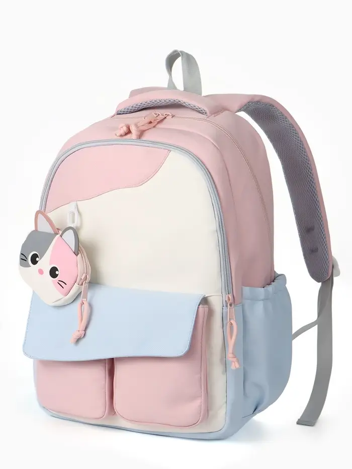 Рюкзак 32*14*46 см, 2 отд, 4 н/карм, +Кошелек, Кот розовый/голубой