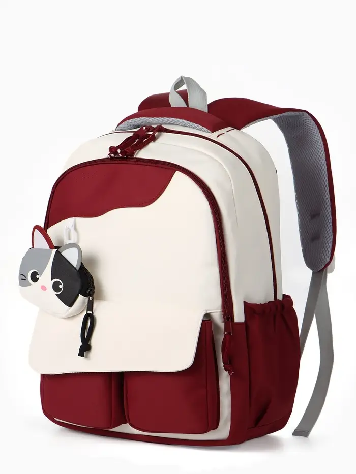 Рюкзак 32*14*46 см, 2 отд, 4 н/карм, +Кошелек, Кот, бордовый/белый