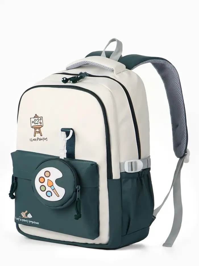 Рюкзак 33*14*43 см, 2 отд, 4 н/карм, +Кошелек, Рисунок, зеленый/белый