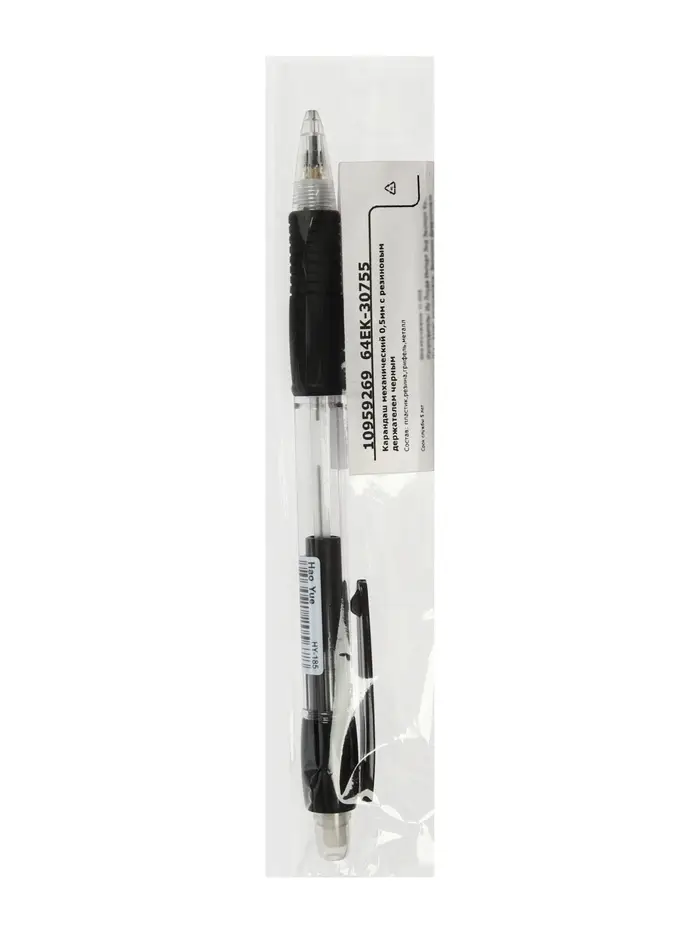 Карандаш механический, 0.5 мм, с резиновым держателем, чёрным