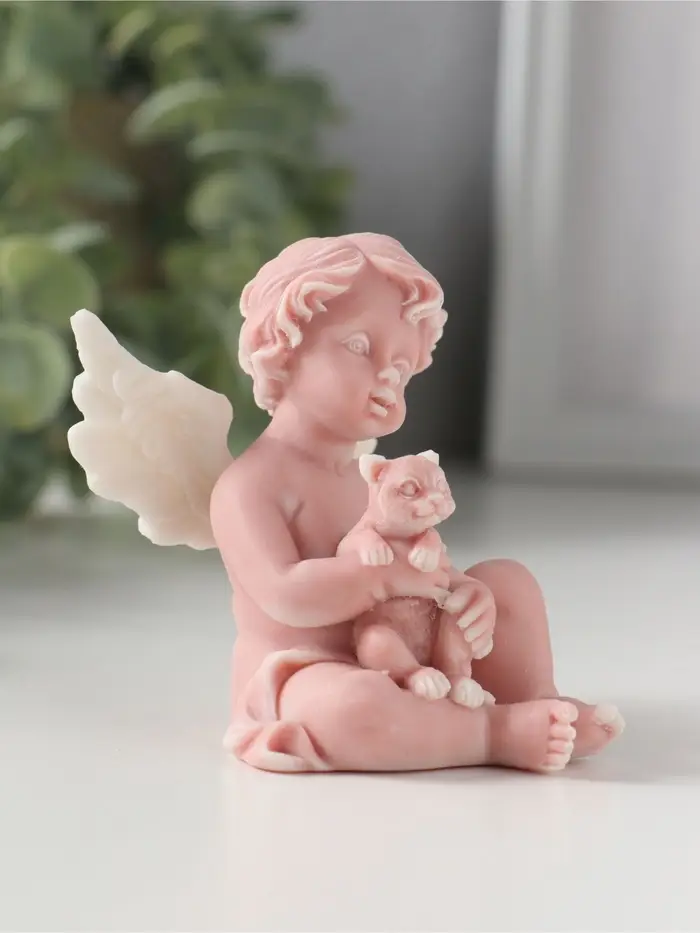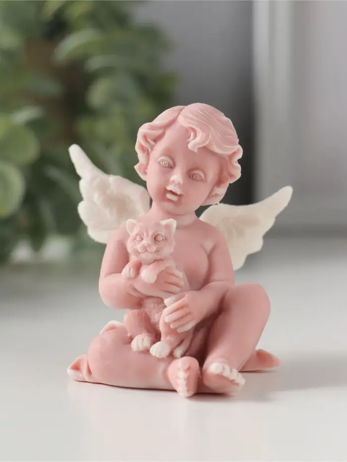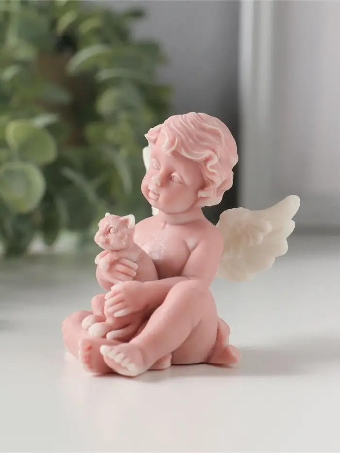 Сувенир "Ангелочек с котенком", 7,2см