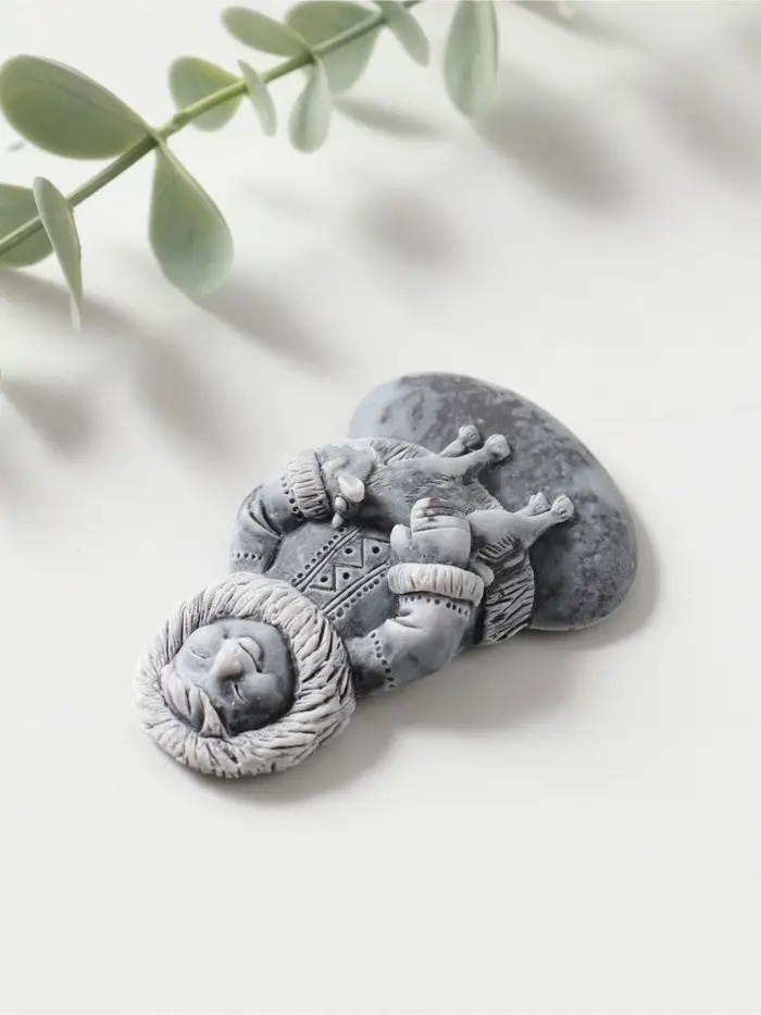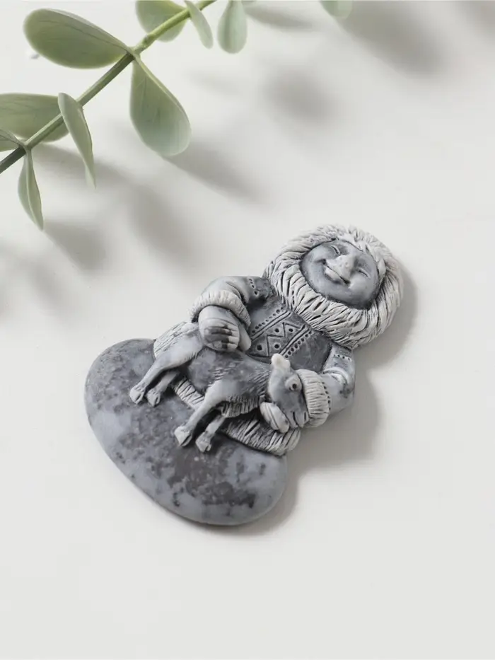 Магнит "Девочка с олененком" (барельеф) , 7,5см