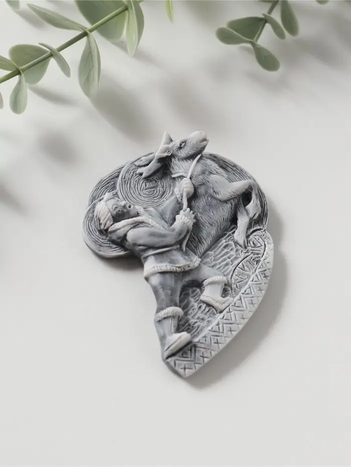 Магнит "Оленевод" (барельеф) , 6,5см