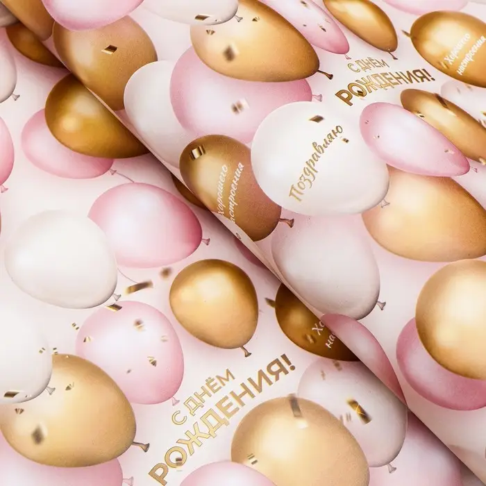 Бумага упаковочная, глянцевая «Поздравляю с Днем Рождения!» 60×90 см