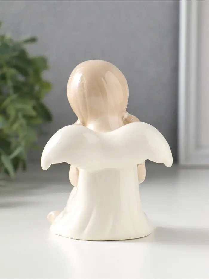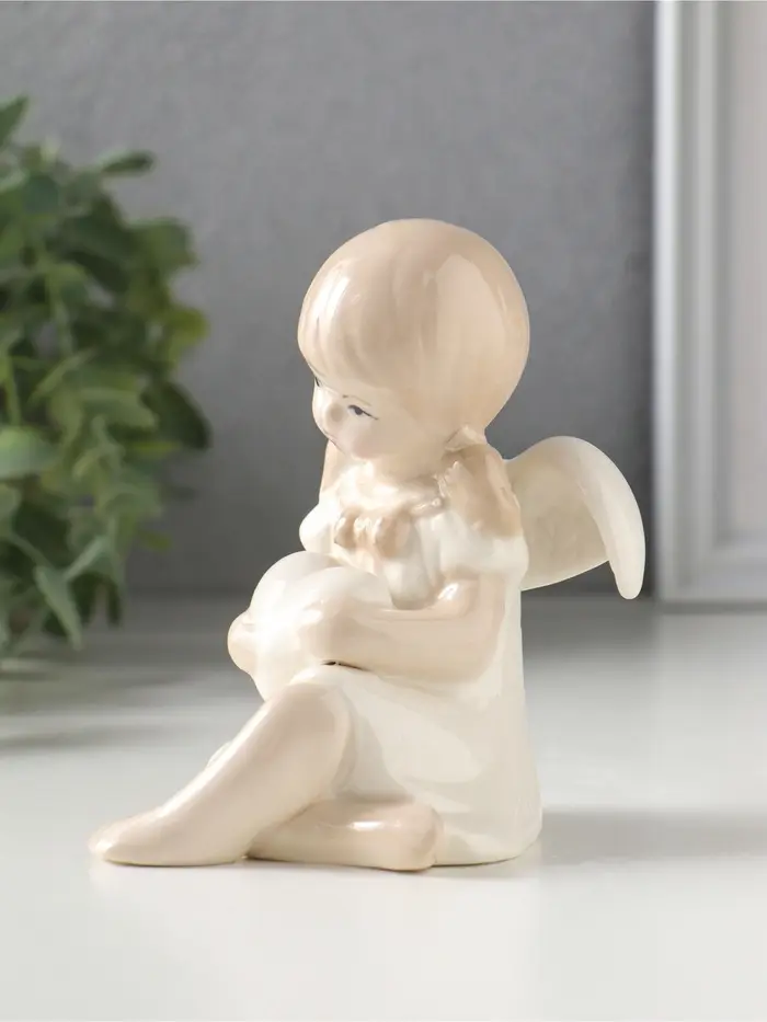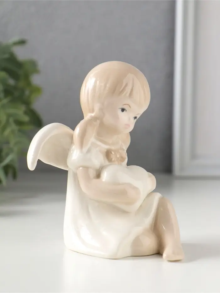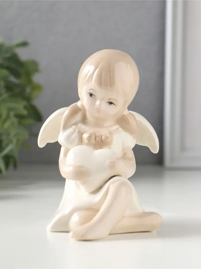 Сувенир керамика "Девочка-ангел в платьице с бантиком, держит сердце" 8,8х7,5х10,3 см