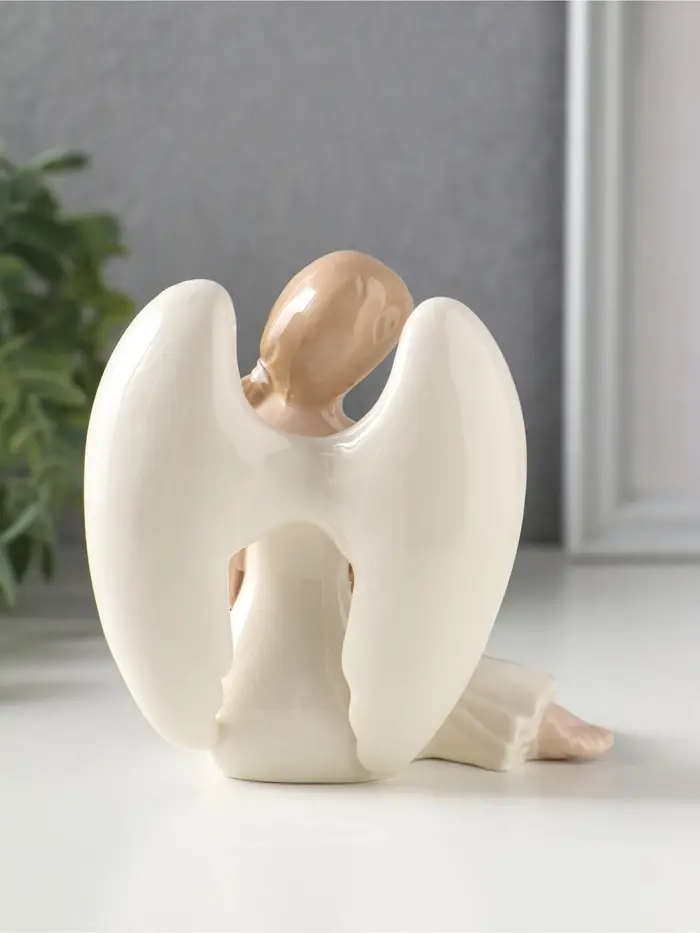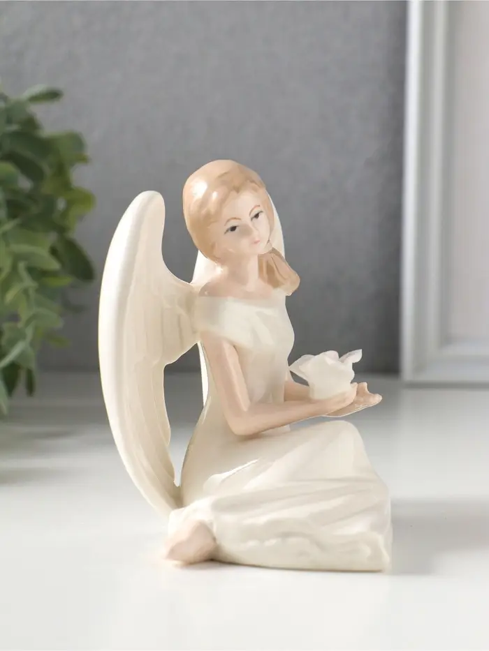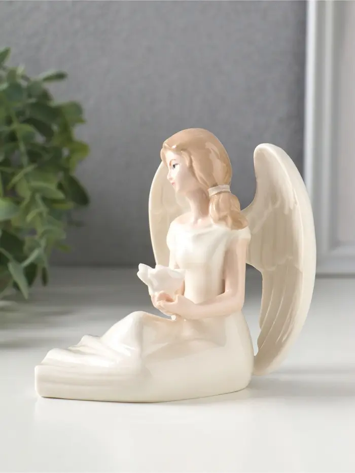 Сувенир керамика "Девушка-ангел в белом платье, с белой розой в ладонях" 11,3х10х9,8 см