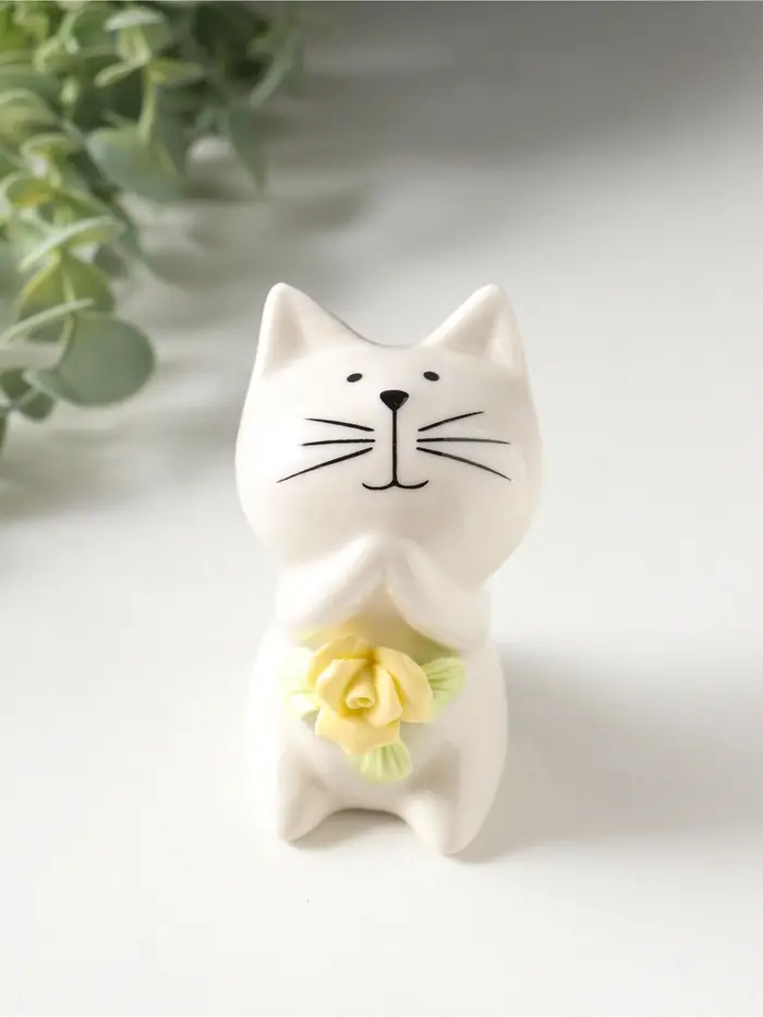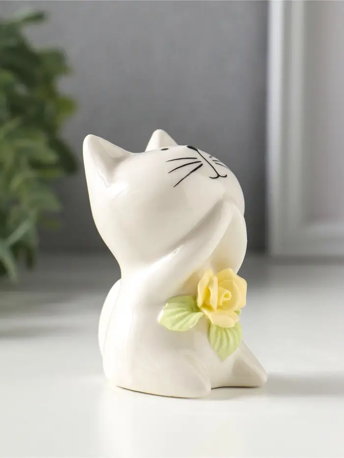 Сувенир керамика "Белый котёнок с желтым цветочком" 5,2х5х7,6 см
