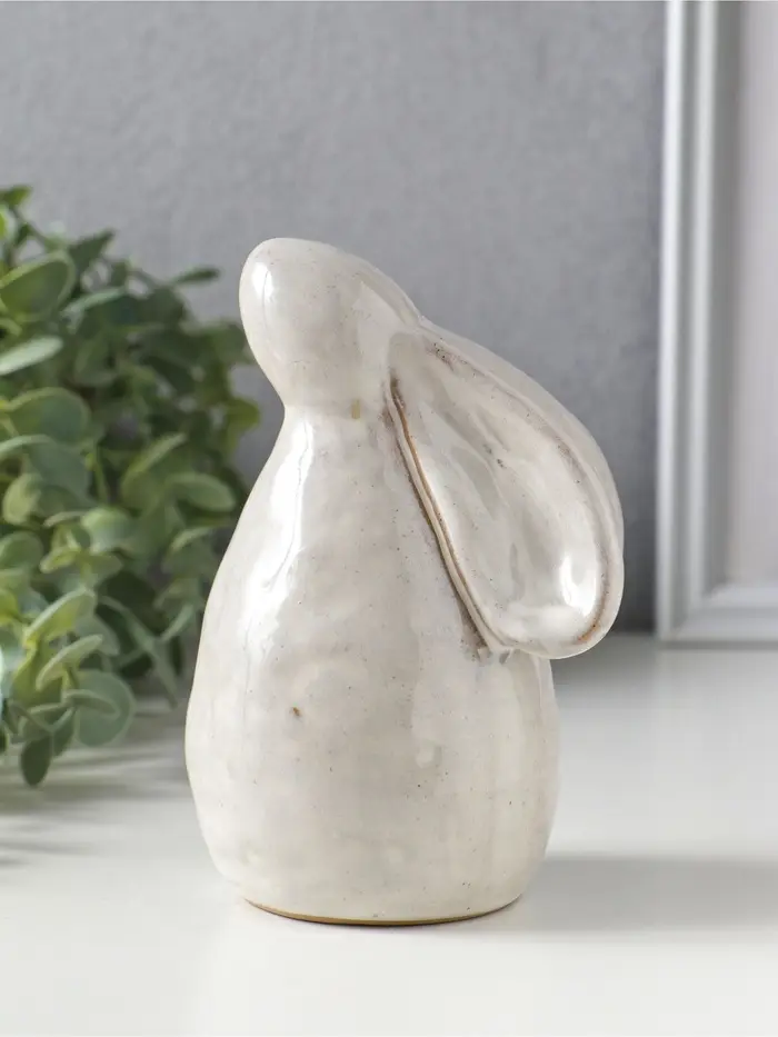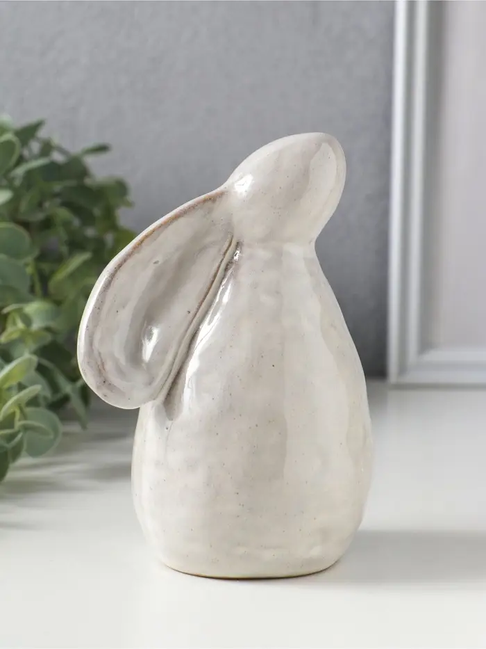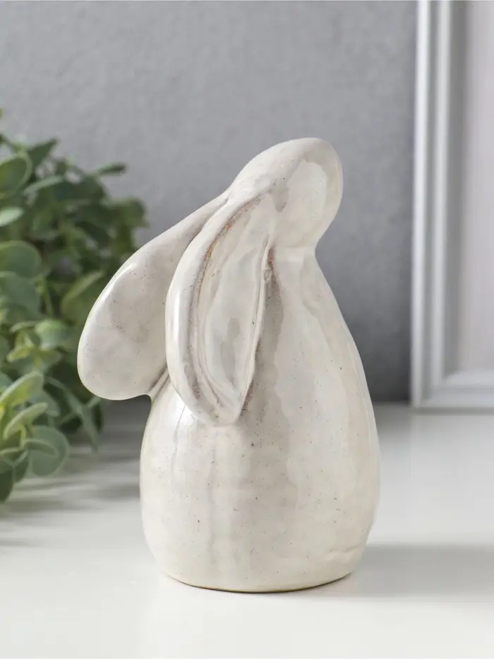 Сувенир керамика "Зайка с прижатыми ушками" беж 9х7,7х13,8 см