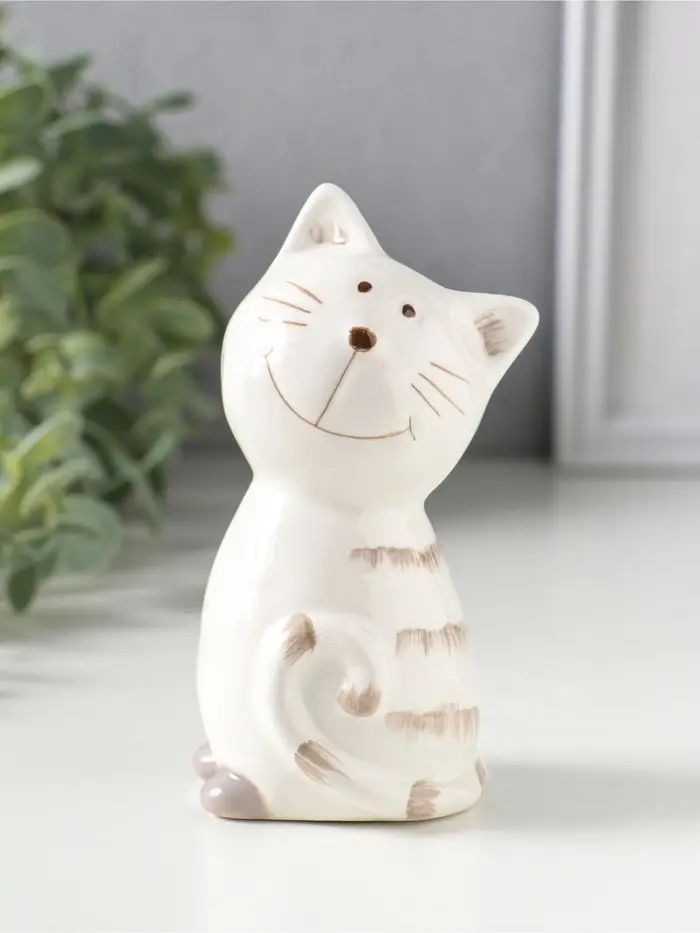 Сувенир керамика "Котейка белый полосатый" 6,5х5,3х11,2 см