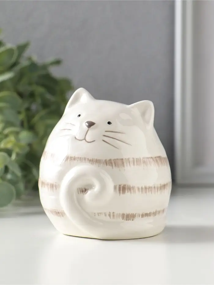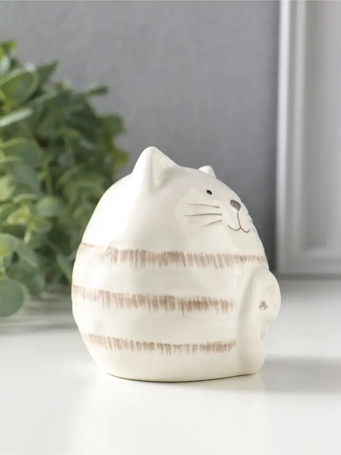 Сувенир керамика "Полосатый котик-шарик" 8х7,5х8,5 см