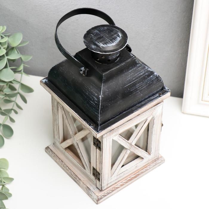 Подсвечник дерево на 1 свечу "Фонарь - ставни" состаренный 22х11,5х11,5 см