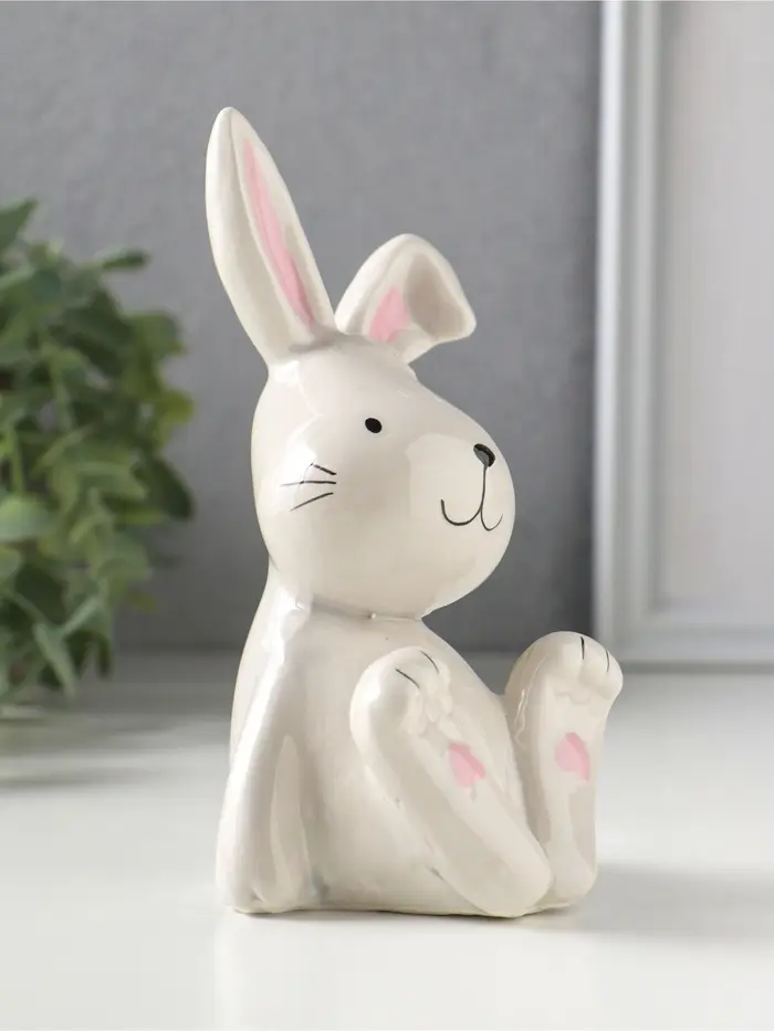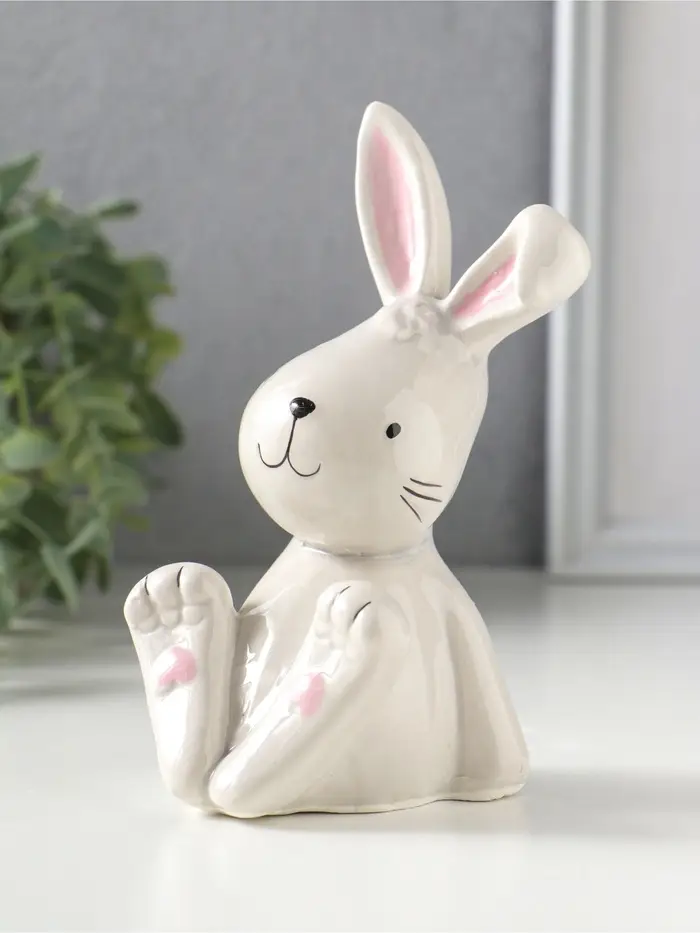 Сувенир керамика "Серый зайчик с сердечками на пяточках" 8х7,5х13,6 см