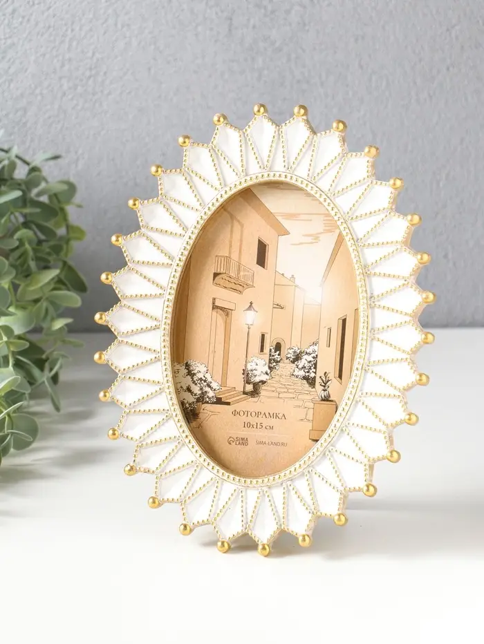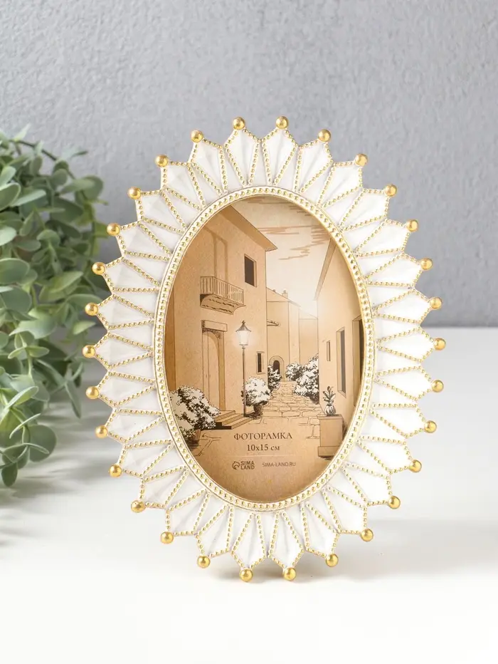 Фоторамка полистоун 10х15 см "Пики" белая с золотом 17х2,3х21,9 см