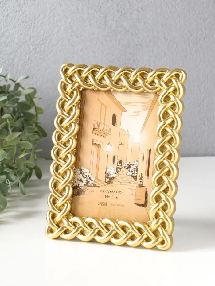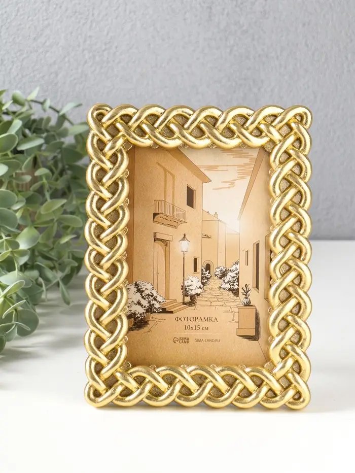 Фоторамка полистоун 10х15 см "Коса" золото 14,8х2х20 см