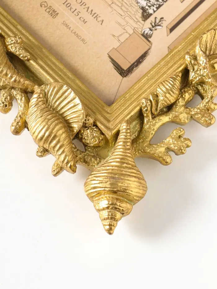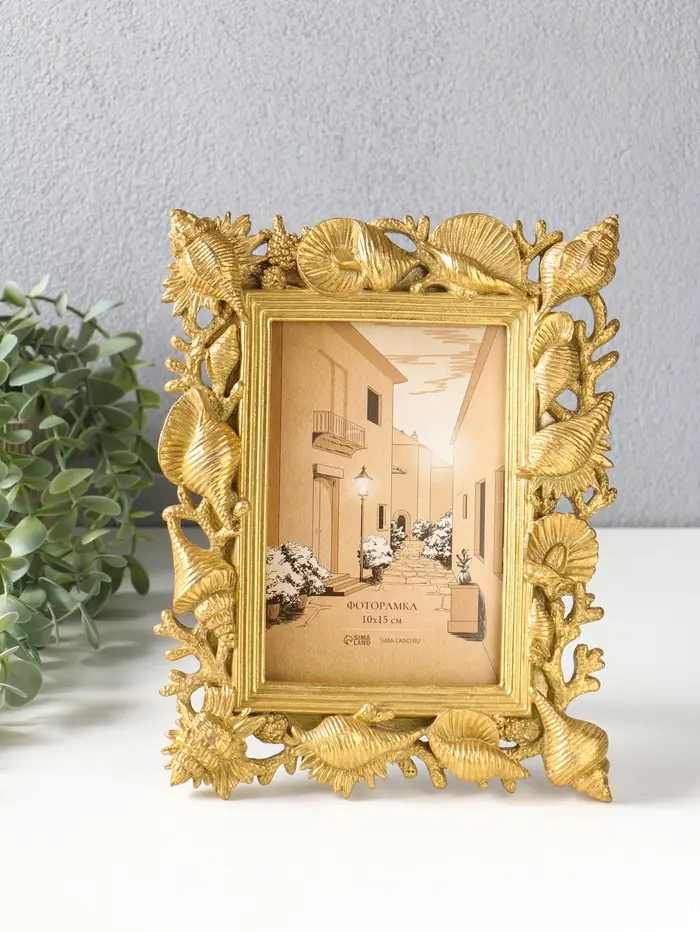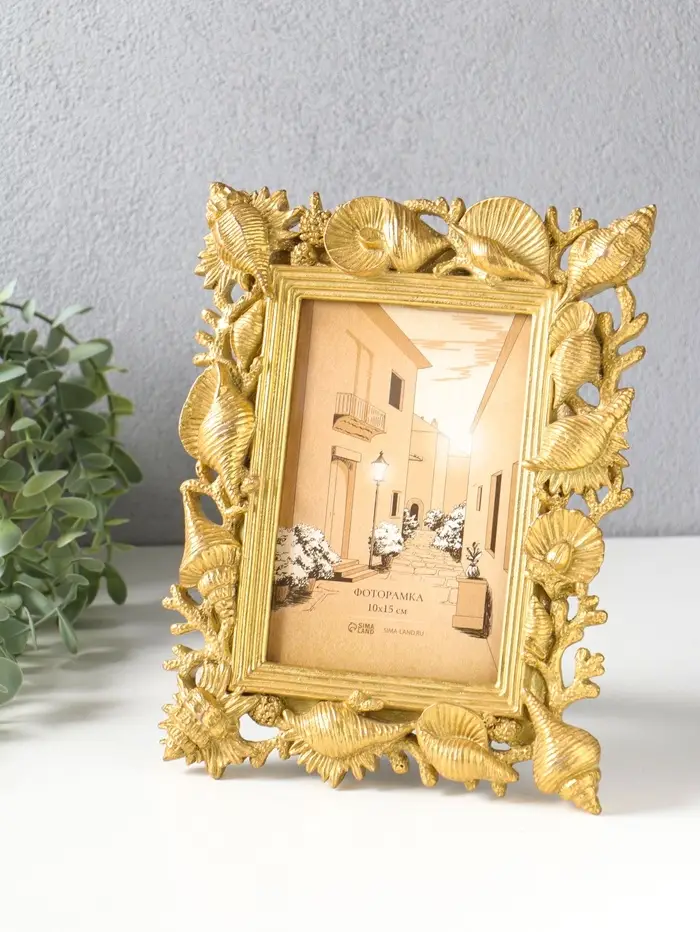 Фоторамка полистоун 10х15 см "Морские ракушки" золото 18,1х2,5х23,2 см