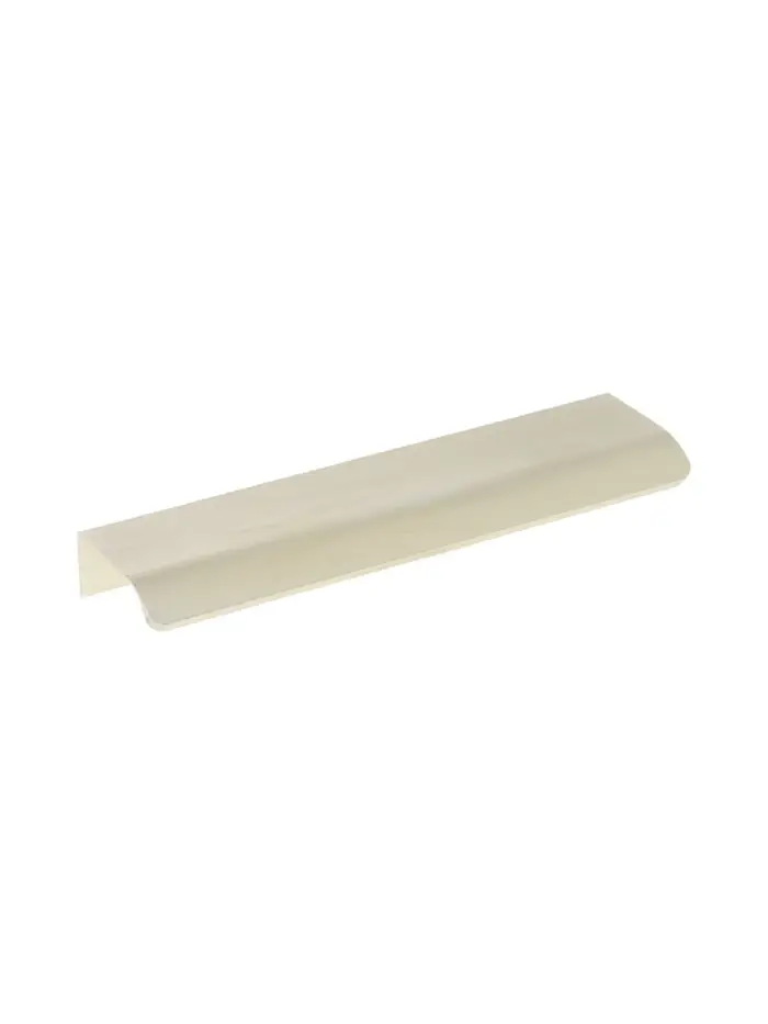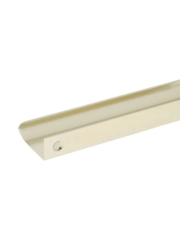 Торцевая мебельная ручка, длина 150 мм, межосевое расстояние 128 мм, алюминий, цвет сатиновое золото — фурнитура для фасадов шкафов-купе, гардеробных и комодов. Изготовлена из алюминия с покрытием под сатиновое золото. Г-образная форма с удлиненной консолью удобна для захвата. Торцевое расположение подходит для фасадов без выступающих элементов.