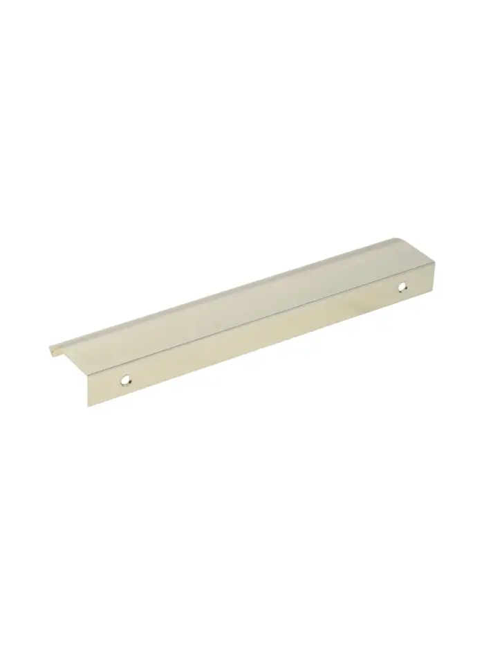 Торцевая мебельная ручка, длина 200 мм, межосевое расстояние 160 мм, алюминий, цвет сатиновое золото — фурнитура для фасадов шкафов-купе, гардеробных и комодов. Изготовлена из алюминия с покрытием под сатиновое золото. Г-образная форма с удлиненной консолью удобна для захвата. Торцевое расположение подходит для фасадов без выступающих элементов.