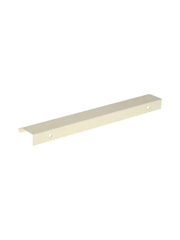 Торцевая мебельная ручка, длина 250 мм, межосевое расстояние 192 мм, алюминий, цвет сатиновое золото — фурнитура для фасадов шкафов-купе, гардеробных и комодов. Изготовлена из алюминия с покрытием под сатиновое золото. Г-образная форма с удлиненной консолью удобна для захвата. Торцевое расположение подходит для фасадов без выступающих элементов.