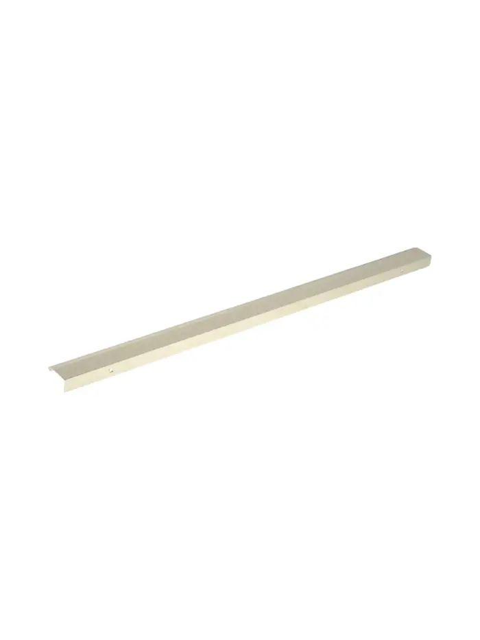 Торцевая мебельная ручка, длина 600 мм, межосевое расстояние 480 мм, алюминий, цвет сатиновое золото — фурнитура для фасадов шкафов-купе, гардеробных и комодов. Изготовлена из алюминия с покрытием под сатиновое золото. Г-образная форма с удлиненной консолью удобна для захвата. Торцевое расположение подходит для фасадов без выступающих элементов.