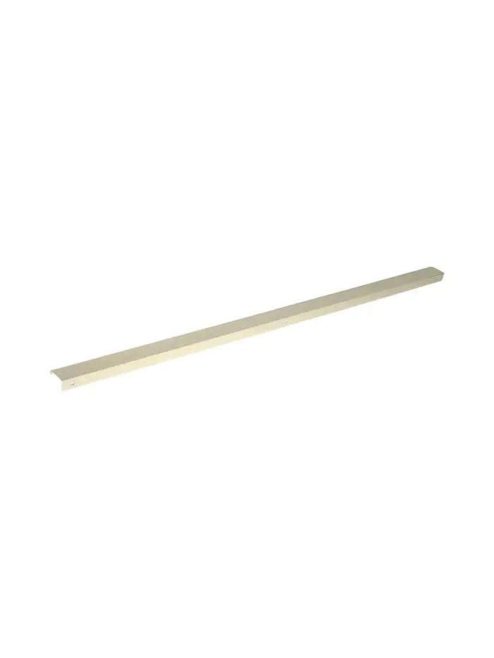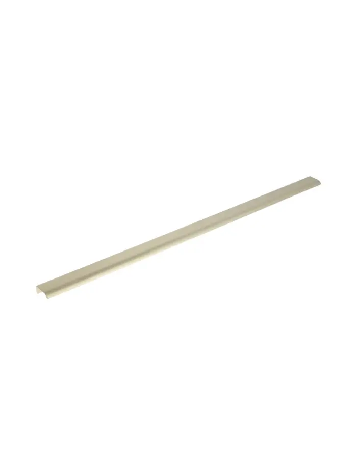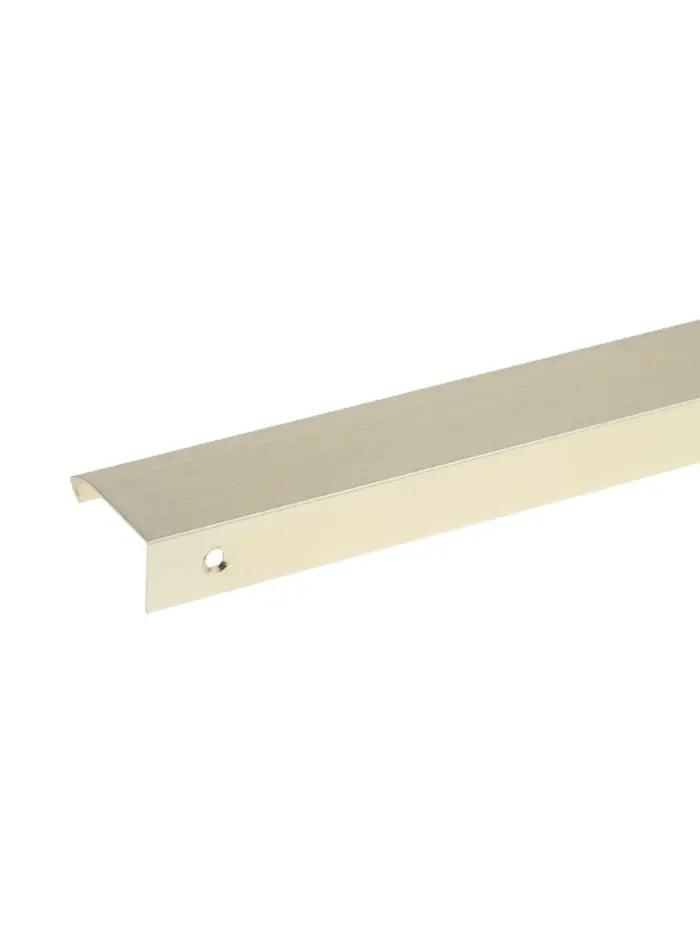Торцевая мебельная ручка, длина 800 мм, межосевое расстояние 768 мм, алюминий, цвет сатиновое золото — фурнитура для фасадов шкафов-купе, гардеробных и комодов. Изготовлена из алюминия с покрытием под сатиновое золото. Г-образная форма с удлиненной консолью удобна для захвата. Торцевое расположение подходит для фасадов без выступающих элементов.
