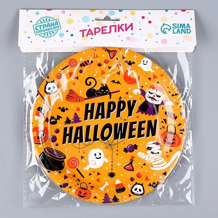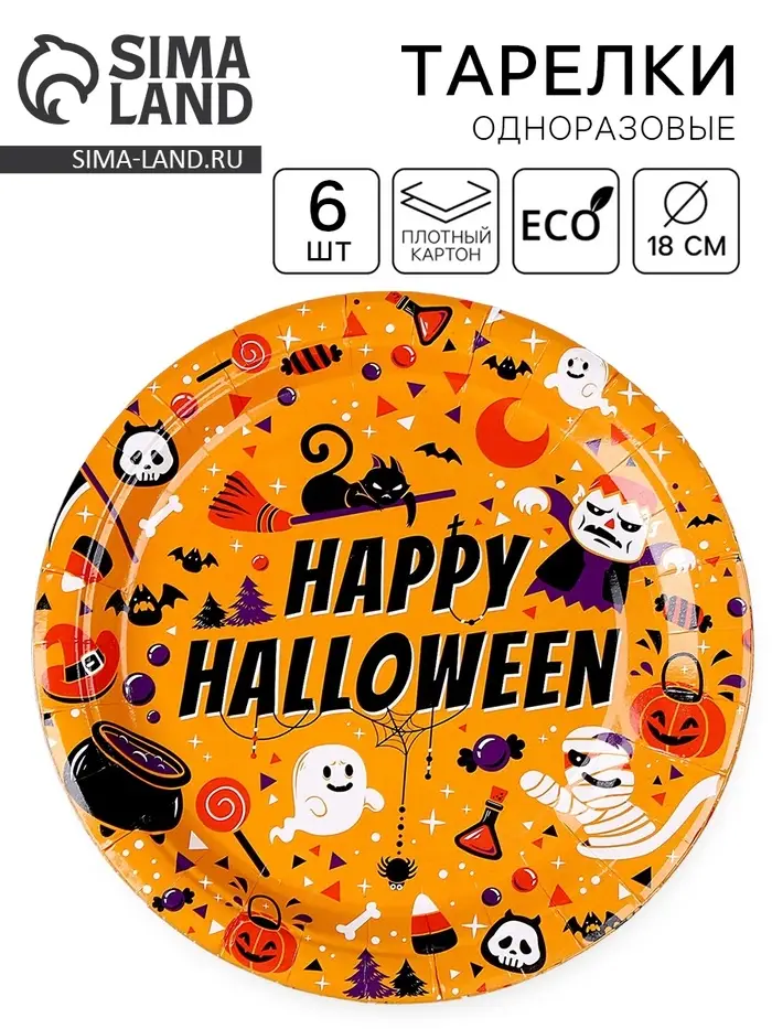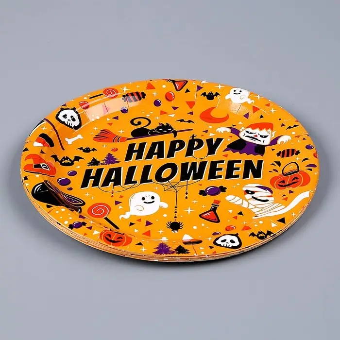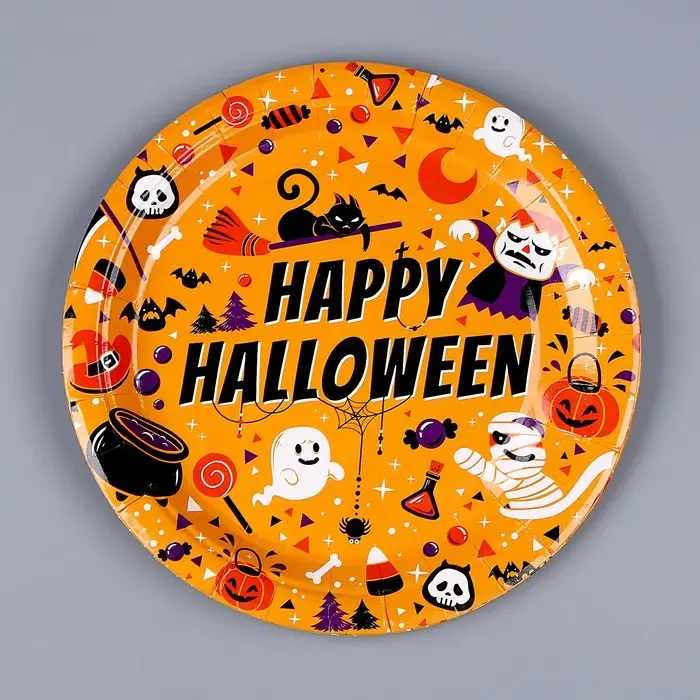 Тарелка бумажная одноразовая «Счастливого хэллоуина», в наборе 6 шт.