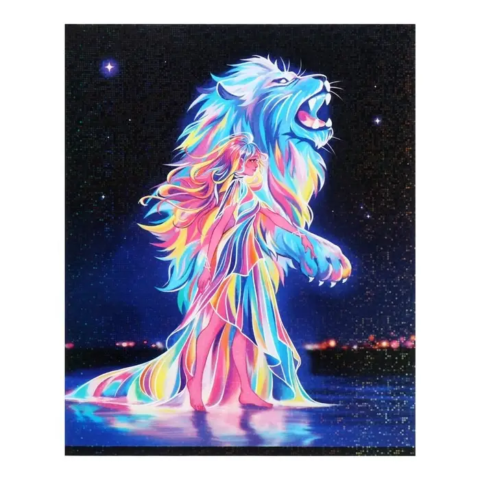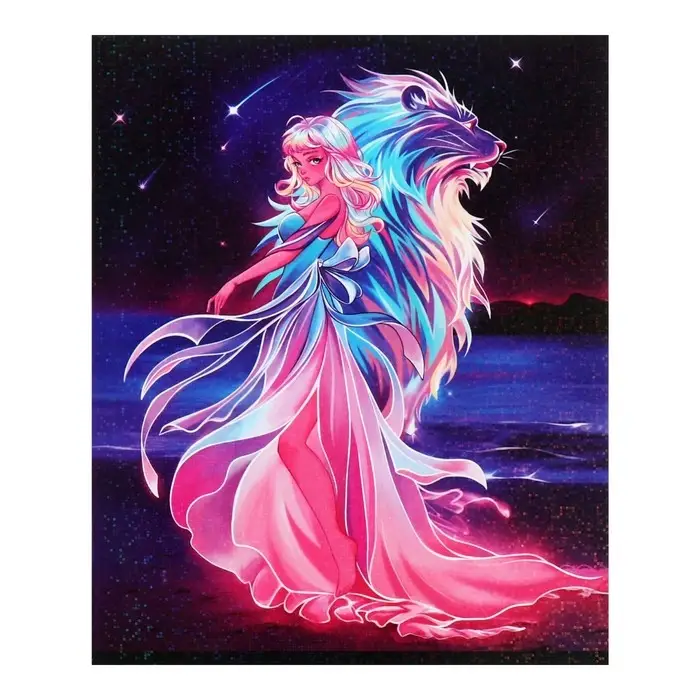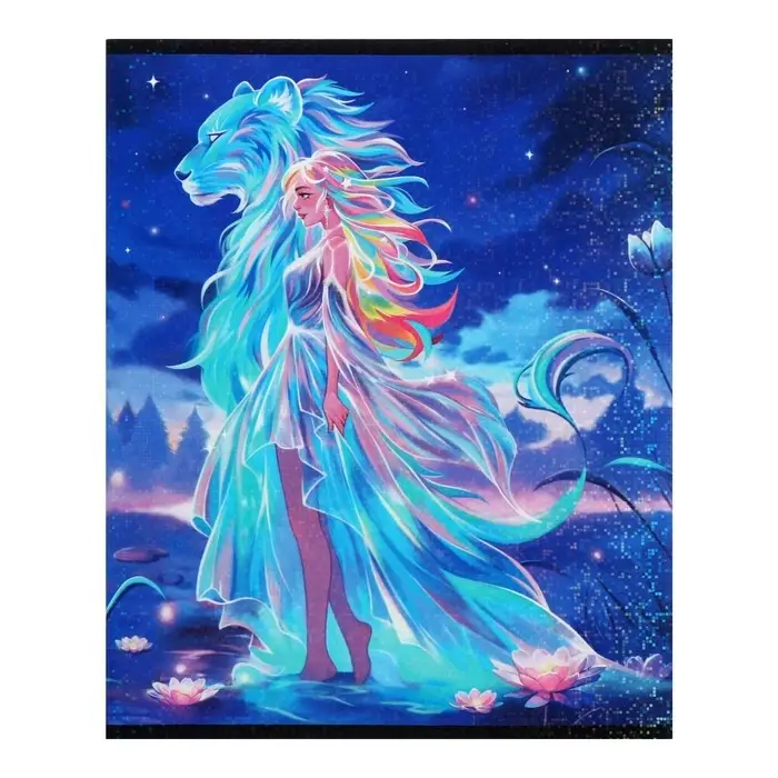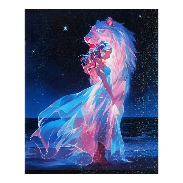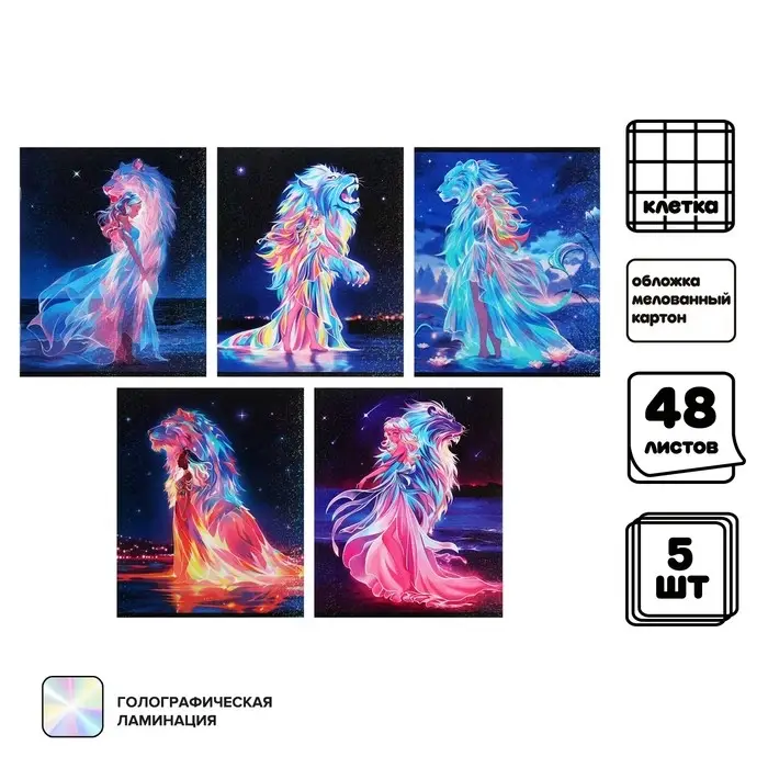 Комплект тетрадей из 5 штук 48 листов в клетку Calligrata TOP «Девушка и лев», обложка мелованный картон, голографическая ламинация, блок офсет