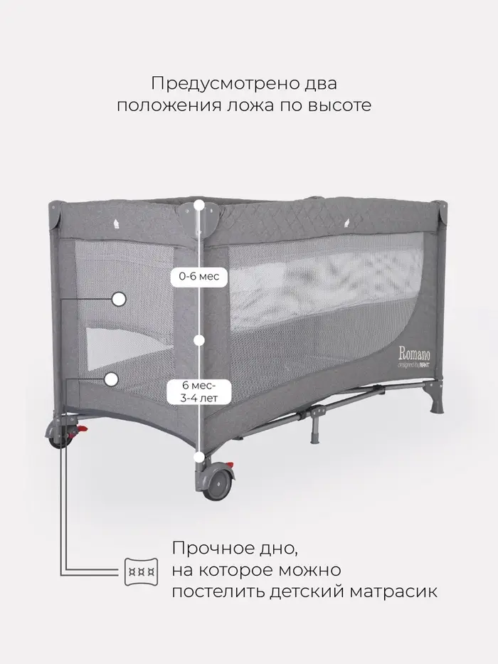 Манеж детский RANT "ROMANO", серый
