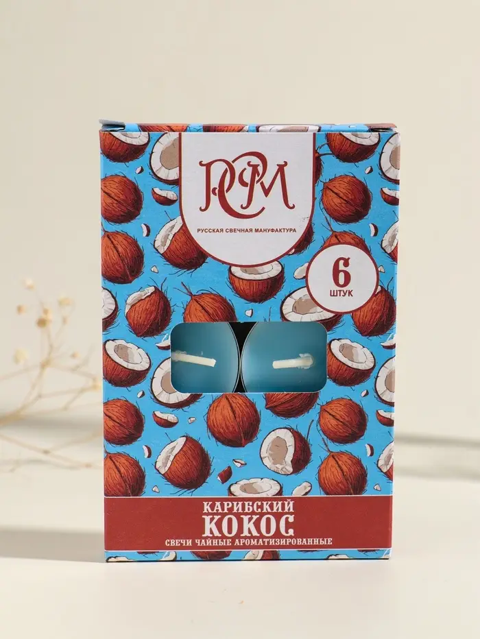 Набор из шести ароматических свечей с тропическим шармом. Каждая чайная свеча пропитана сочным и сладким ароматом спелого кокоса, создавая атмосферу безмятежного отдыха на берегу океана. Идеальный способ быстро наполнить дом уютом и расслабляющей энергетикой далёких островов.