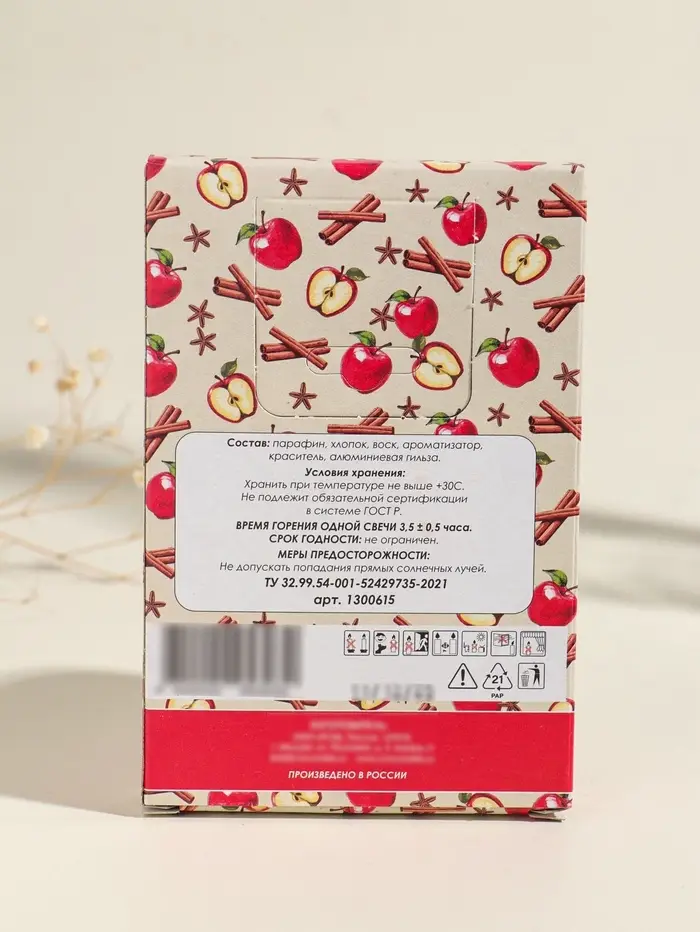 - Устойчивый двухкомпонентный аромат: корица и яблоко.
