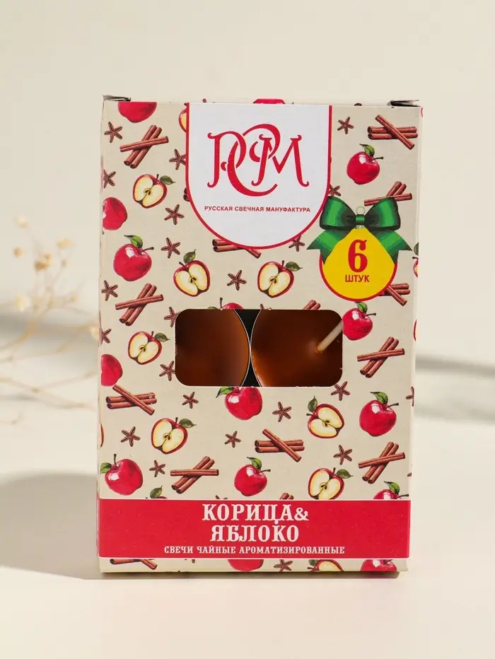Набор свечей ароматических чайных «Корица-яблоко», 6 шт.