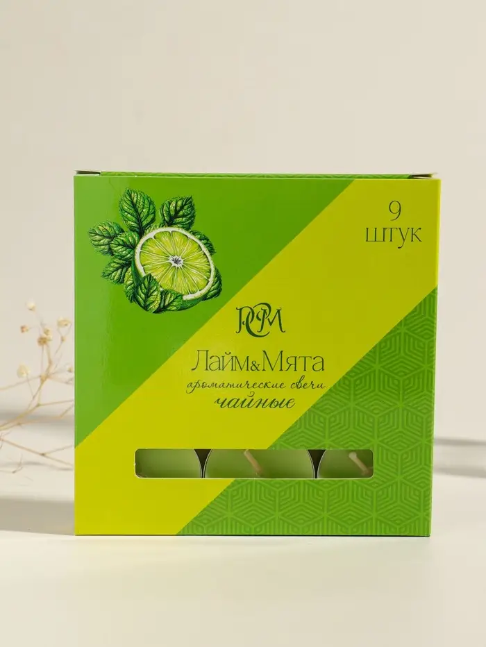 Набор свечей ароматических чайных «Лайм и мята», 9 шт.