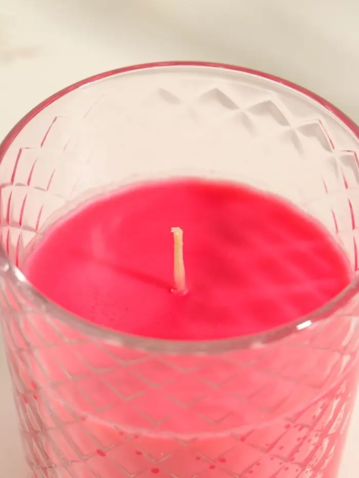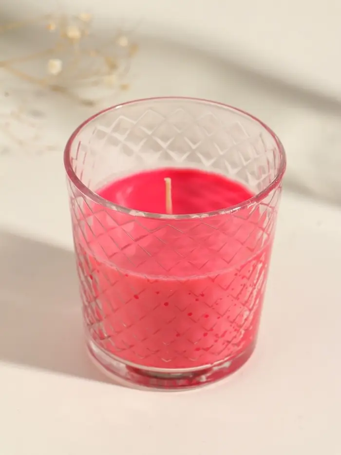 - Нежный розовый цвет свечи дополняет её фруктовую парфюмерную композицию.