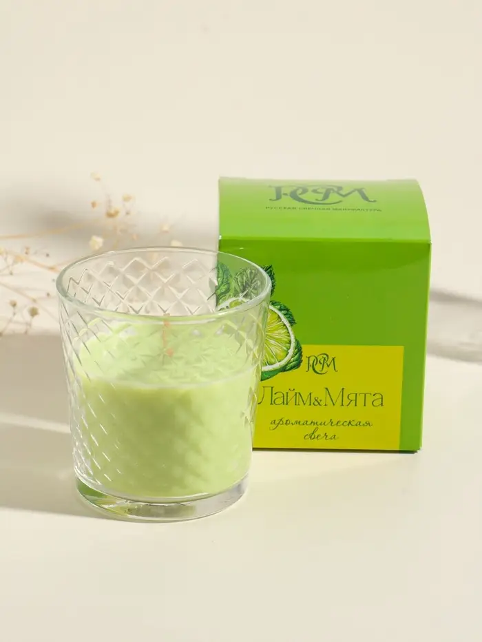 Ароматическая свеча в стеклянном стакане с освежающим дуэтом лайма и мяты. Её чистый, бодрящий аромат превращает пространство в оазис свежести, наполняя воздух энергией цитрусовых и прохладой мятных листьев. Идеальный акцент для создания атмосферы лёгкости и концентрации в доме или офисе.
