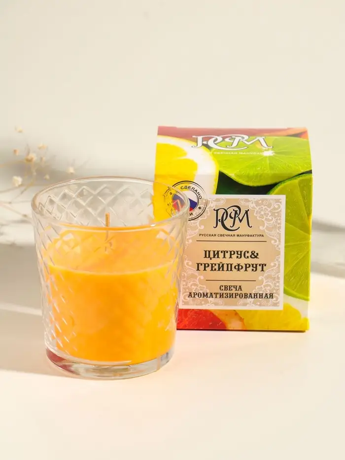 Эта цитрусовая свеча в стакане — простой способ создать дома атмосферу бодрости и свежести. Яркий аромат спелого грейпфрута и сочных цитрусов мгновенно наполняет пространство, заряжая энергией и улучшая настроение. Идеальный спутник для утреннего пробуждения, рабочего сосредоточения или момента релаксации после долгого дня.