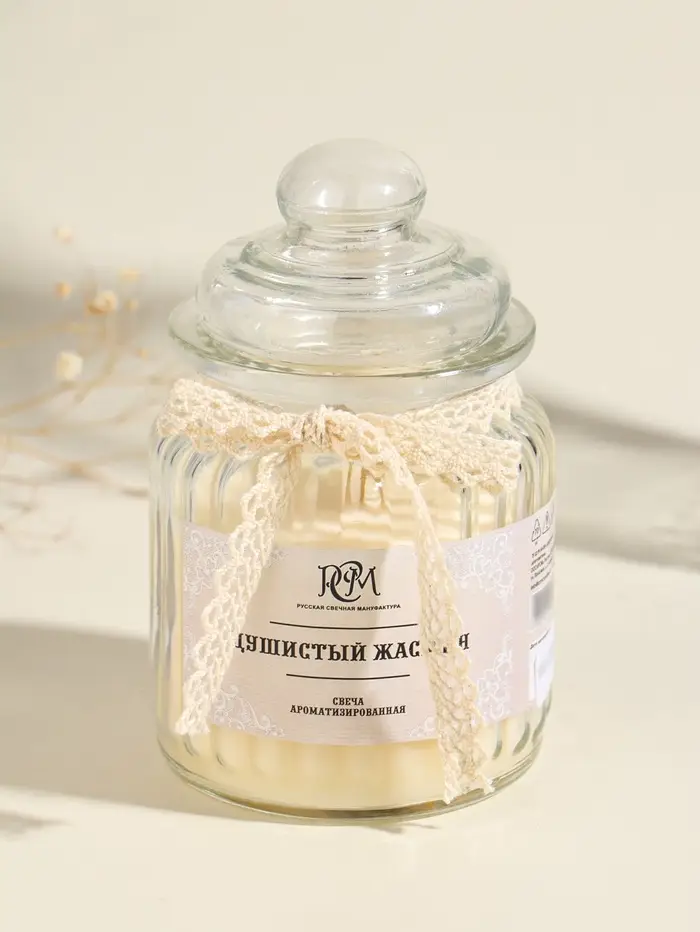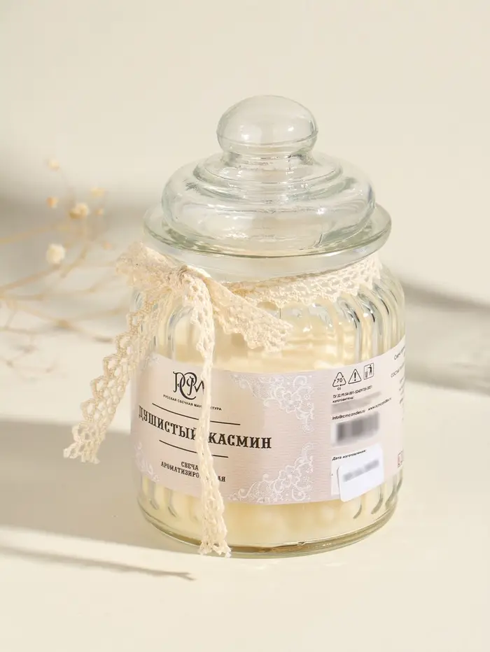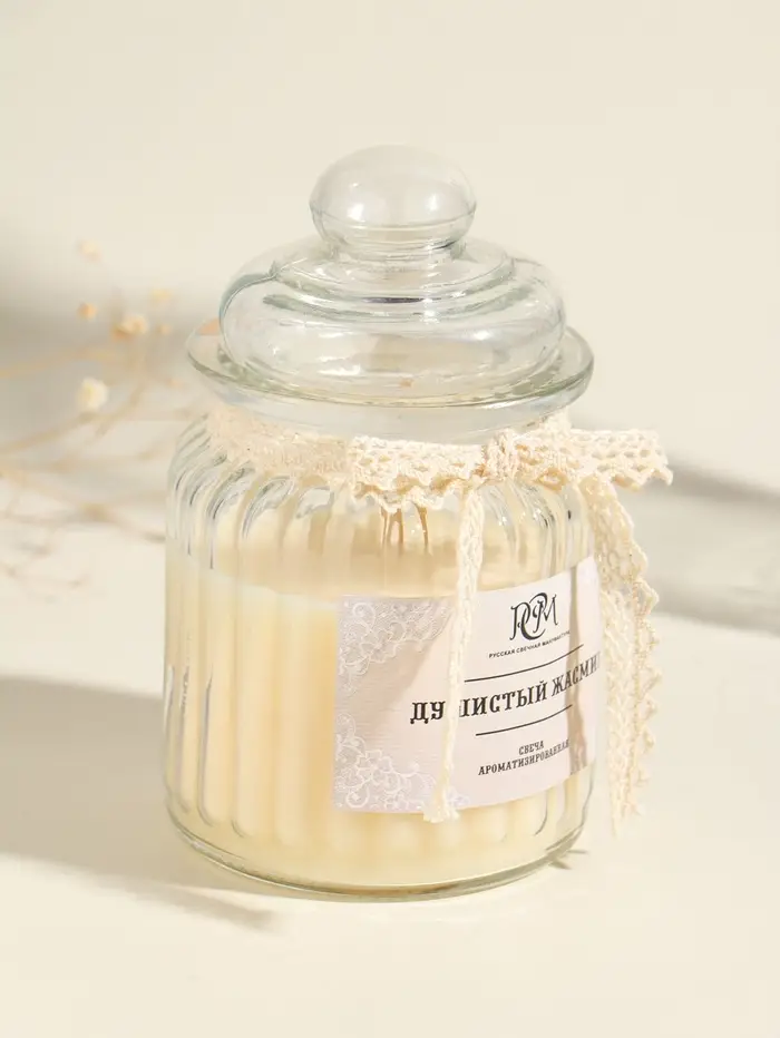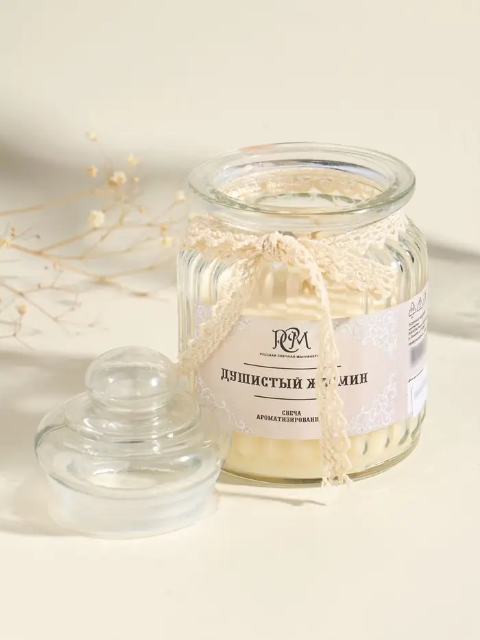 Эта свеча в стеклянной банке наполнит ваш дом чистым и узнаваемым ароматом жасмина. Она создаёт атмосферу спокойствия и уюта, идеально подходя для отдыха после долгого дня или создания особого настроения. Банка не только практична, но и станет стильным элементом декора интерьера.