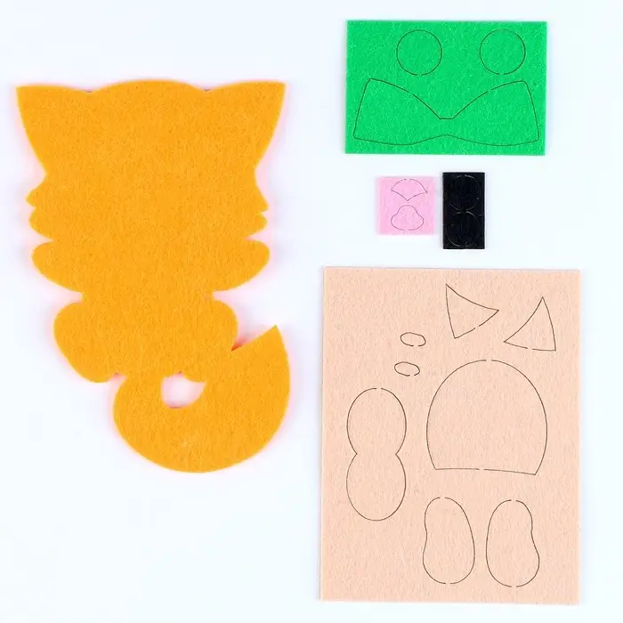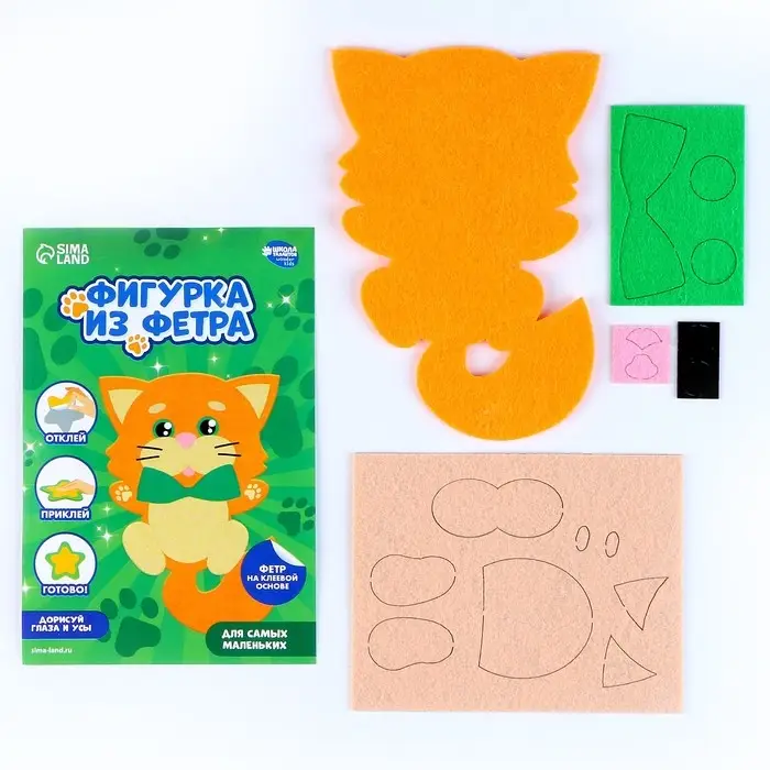 Детям нравится создавать поделки из самых невероятных материалов. Оригинальный набор для создания фетровой фигурки по-настоящему увлечёт ребёнка и станет удачным подарком для талантливого малыша! Теперь вам не нужно вырезать детали вручную, просто отделите защитную пленку и приклейте их на нужное место.