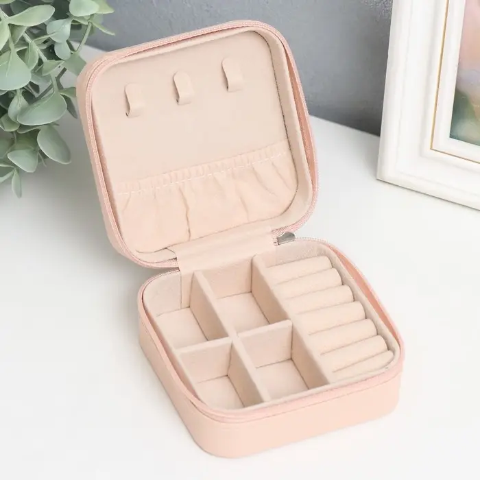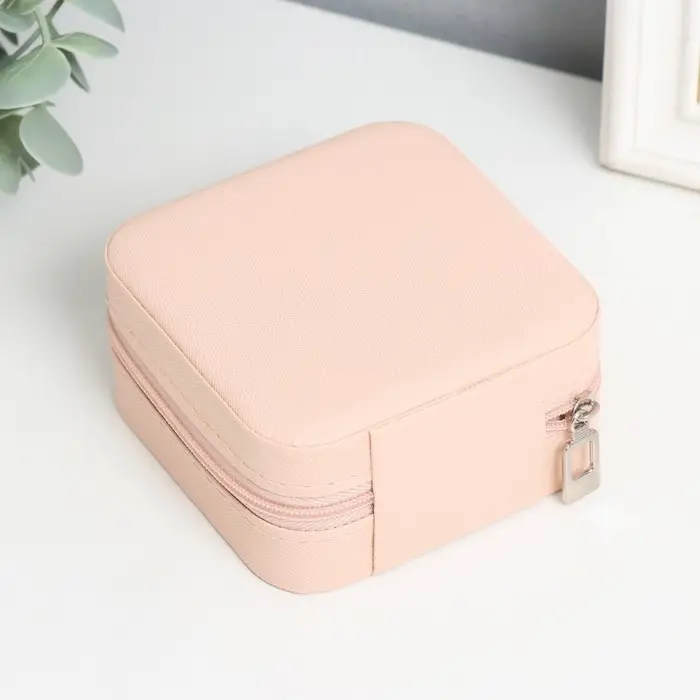 Шкатулка кожзам для украшений "Элегия. Квадратная" розовый 5х10х10 см