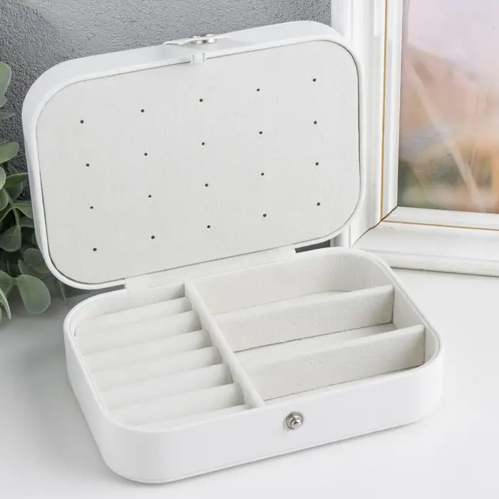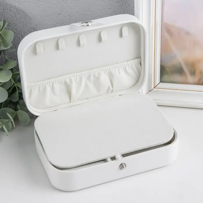 Шкатулка кожзам для украшений "Матовая гладь" белая 16х11х5 см