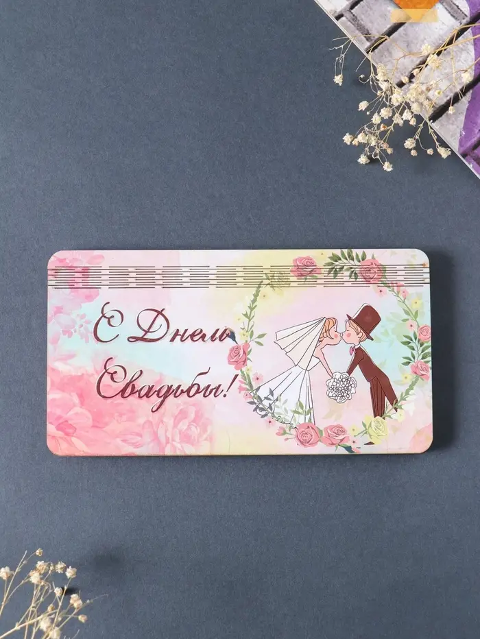 Купюрница свадебная "С днём свадьбы" парочка, 19х9,5х0,7 см, вид 6