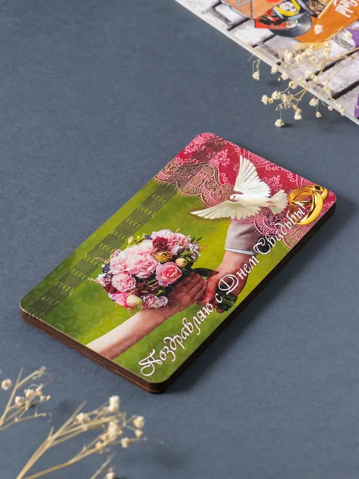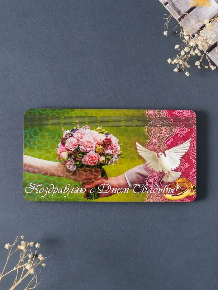 Купюрница свадебная "Поздравляю с днём свадьбы" 19х9,5х0,7 см, вид 8