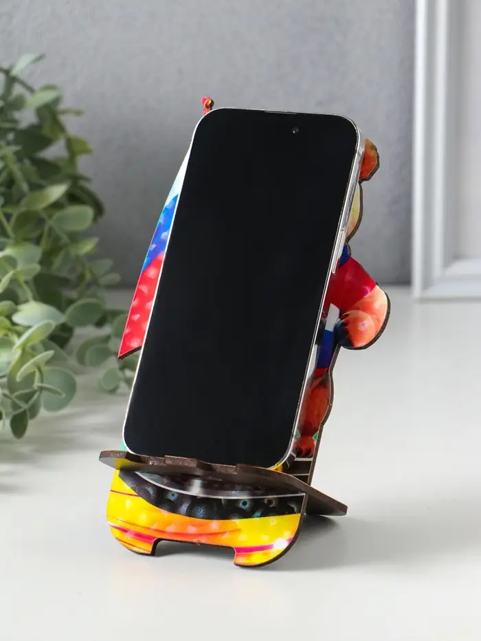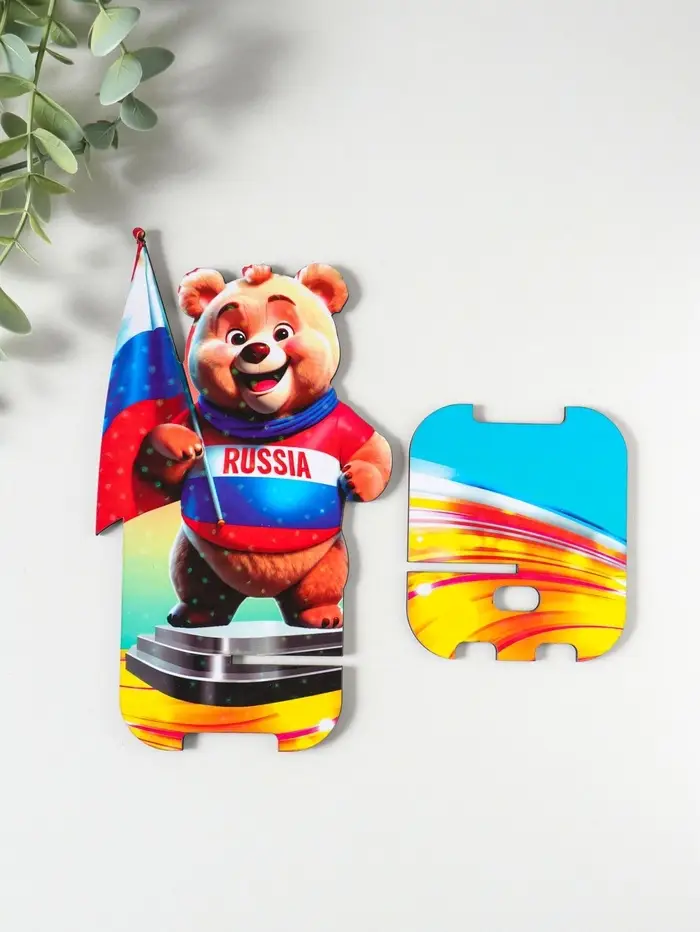 Эта фигурная подставка в виде медведя станет верным помощником на вашем столе. Она надёжно удерживает смартфон или планшет в удобном для просмотра положении, освобождая руки для работы, чтения или видеозвонков. Яркий патриотичный дизайн с узнаваемым символом создаёт особое настроение и делает аксессуар стильным элементом декора.