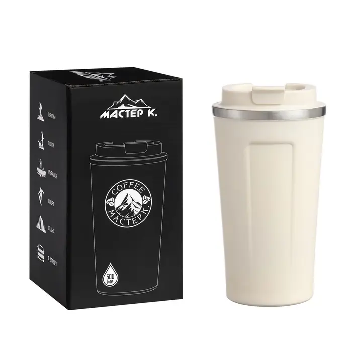 Компактная, экологичная, стильная. Термокружки этой серии пользуются большой популярностью у активных и динамичных пользователей, а так же у любителей охоты и рыбалки, так как они, сохраняют прочность и термоустойчивость, легки и компактны. Эта термокружка идеально подойдет для тех, кто ценит свое время и хочет наслаждаться свежим и горячим кофе, чаем или другими любимыми напитками в любой ситуации. Термокружка "Мастер К" 500 мл (0.5 л) это яркое решение для любителей чая, кофе, травяных, ягодных и фруктовых заварок. Летом данный термос станет приятным спутником на пляж и в жаркий день, так как он сохраняет напиток холодным.