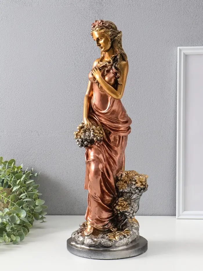 Фигура "Девушка с виноградом" бронза с золотом, 50х20х20 см