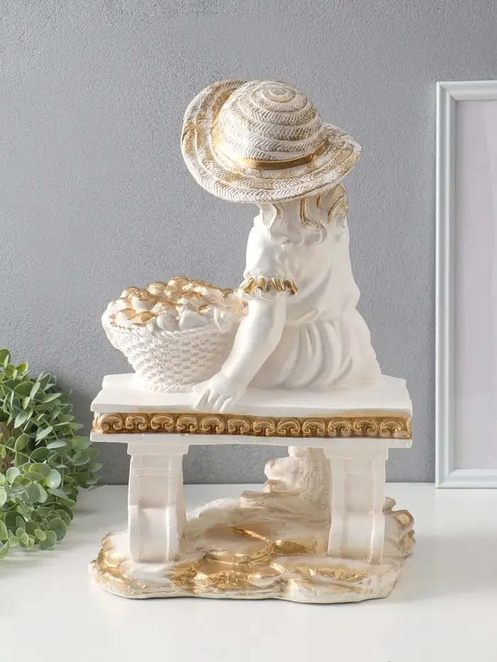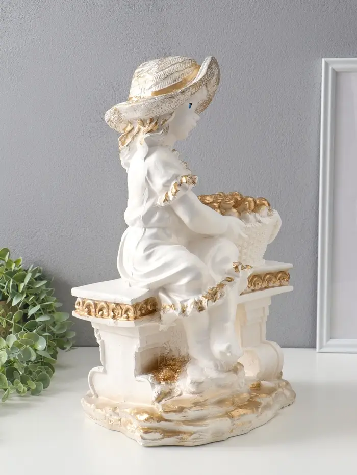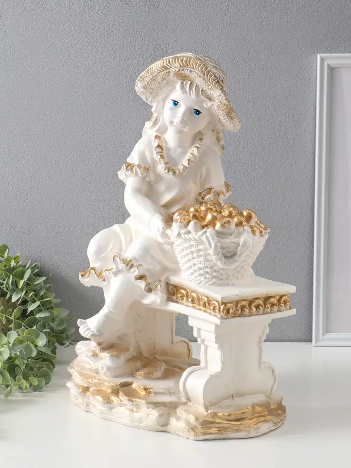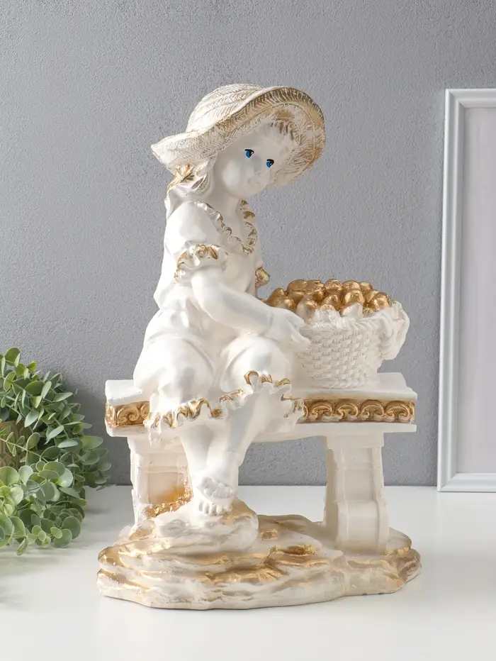 Фигура "Девочка на скамейке" перламутр с золотом, 46х31х22 см